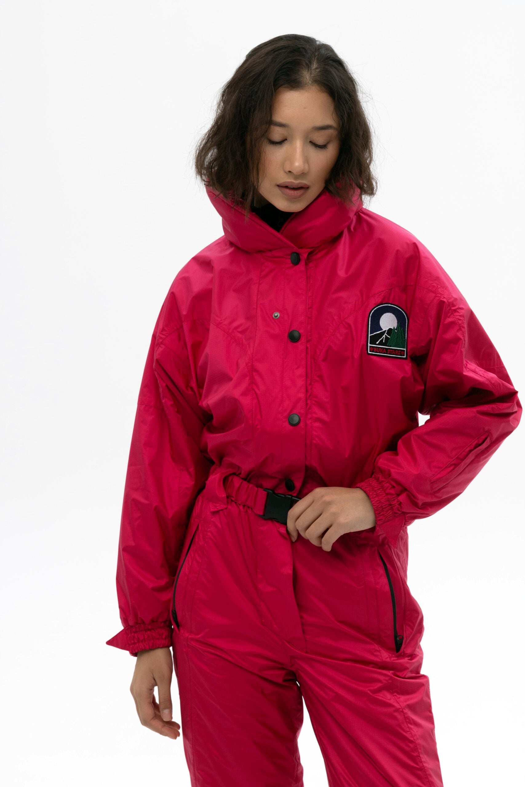 The women’s pink winter jumpsuit is the perfect choice for ski vacations, downhill skiing, and snowboarding. Stylish, warm, and functional, it is designed for maximum comfort and performance in cold weather.