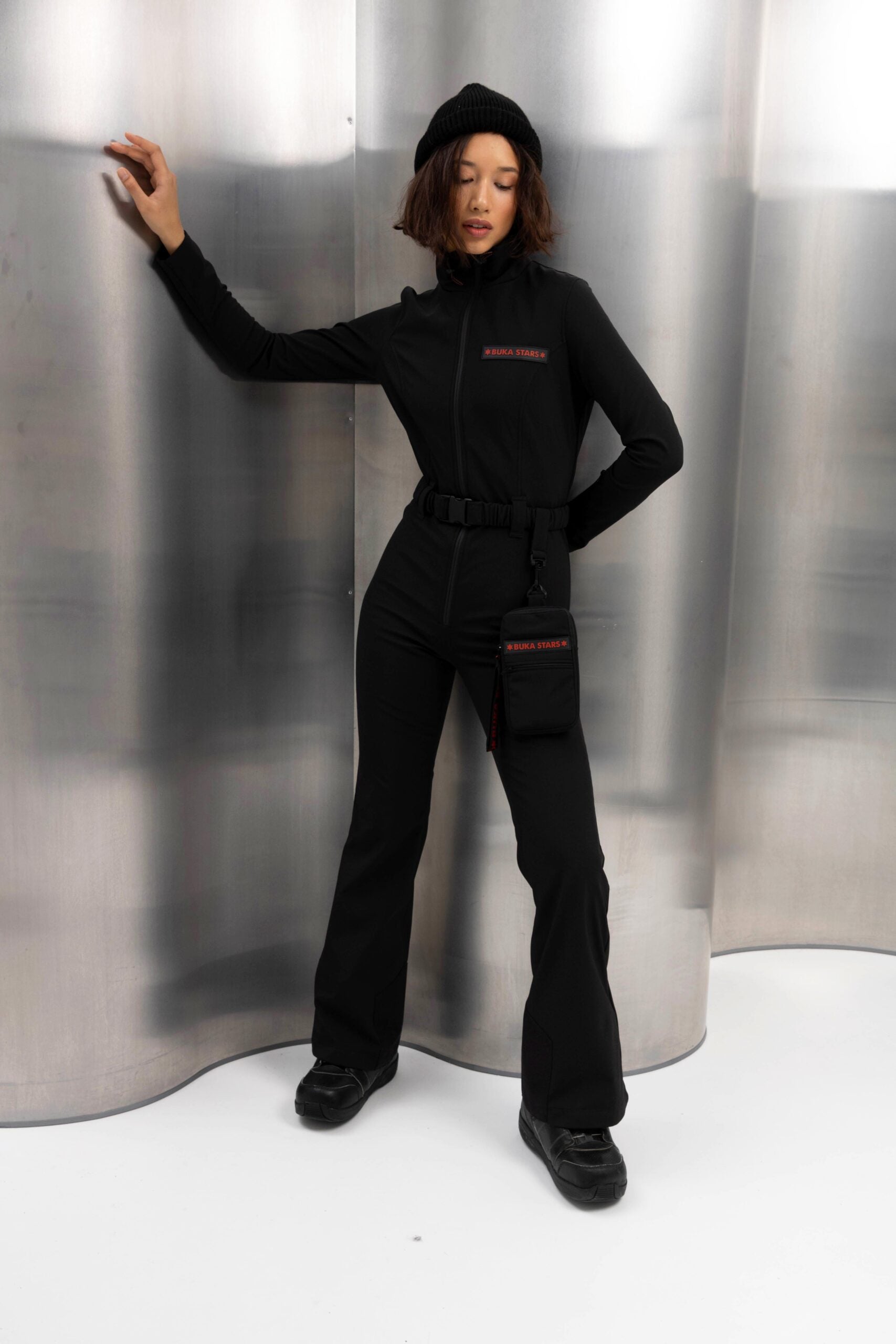 Included Accessories: The jumpsuit comes with a small matching pouch for your phone and cards — convenient for ski lifts and active movement.